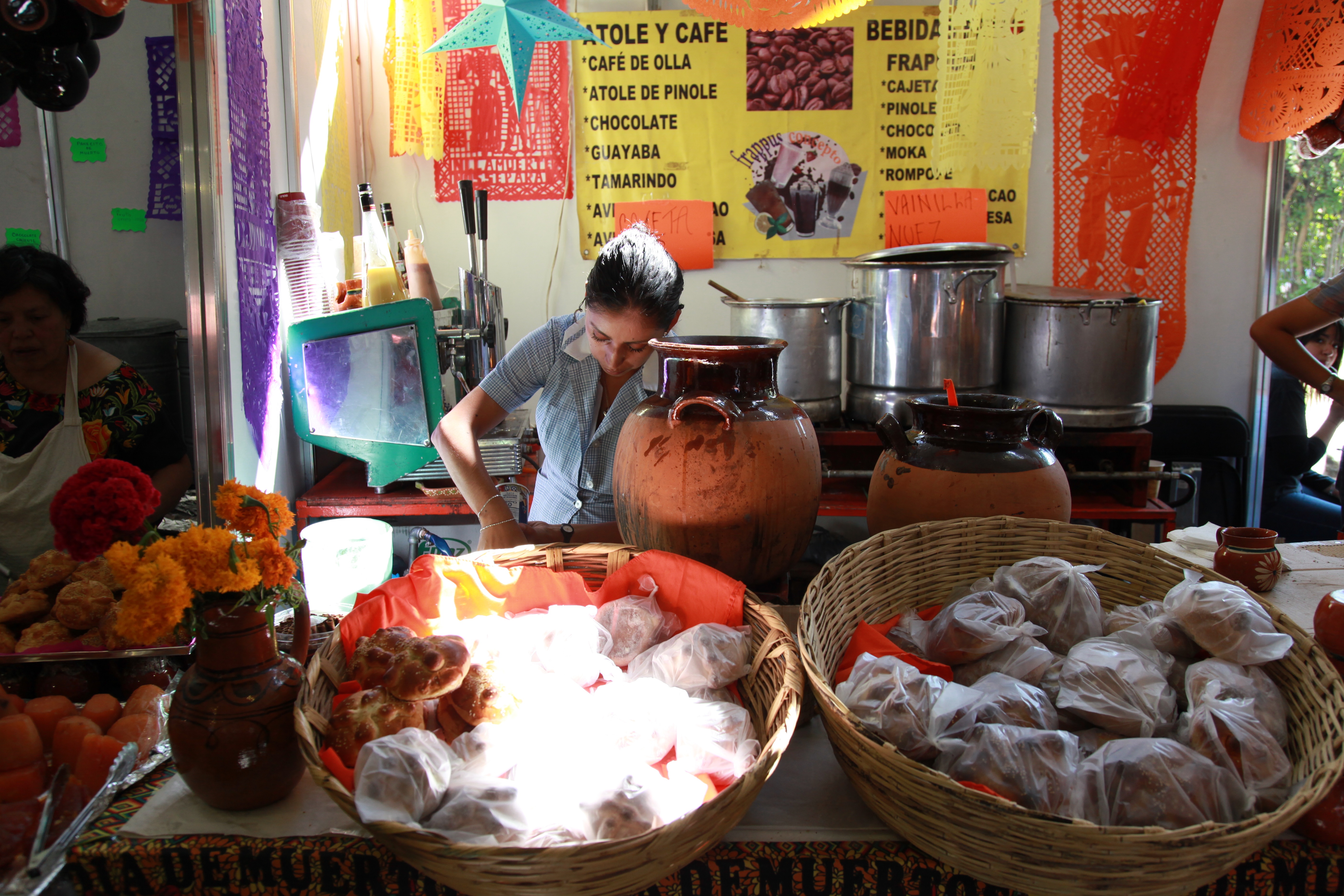 Por alguna razón siempre me ha gustado buscar en el periódico las diferentes ferias culturales y gastronómicas que hay en nuestro país, con el fin de no ir a ninguna. El simple hecho de saber que existe la feria de mole, de los tamales, la de las tortas, la feria del libro en el Zócalo y la de las flores; me da un motivo de esperanza de que algún día asistiré. No se que pasa pero cuando llega el fin de semana, la flojera y el exceso de cansancio se apodera de muchos de nosotros dejándonos inmóviles; este fin de semana fue diferente. Aprovechando el furor de Halloween y Día de Muertos, me tope con la mejor actividad de todas para hacer el fin de semana: comer y comer y beber y beber mucho chocolate y pan de muerto.